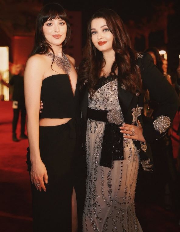 डकोटा जॉनसन के साथ ऐश्वर्या पोज़ देती हुईं
