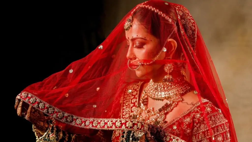 गहरे ज़री के काम से सजे चटक लाल रंग के ब्राइडल लहंगे में अभिनेत्री बेहद खूबसूरत लग रही थीं। उन्होंने अपने लुक को स्टेटमेंट नेकलेस, पारंपरिक नथ और हल्के न्यूड मेकअप से पूरा किया। उनकी चमक और खुशी ने उनके ब्राइडल लुक को और भी खास बना दिया।
