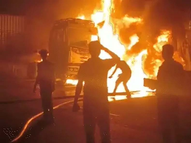 टक्कर लगते ही कंटेनर ट्रक के केबिन में अचानक आग भड़क उठी। इस आग ने दूसरे ट्रक को भी चपेट में ले लिया। दोनों वाहनों के ड्राइवरों ने कूद कर अपनी जान बचाई। प्रत्यक्षदर्शियों के मुताबिक दोनों वाहनों की चपेट में वहां खड़ा एक रेहड़ी और बाइक सवार भी आ गया। उनकी रेहड़ी और बाइक भी जलकर राख हो गई। मौके पर मौजूद लोगों ने रेहड़ी चालक और बाइक सवार को किसी तरह बचाकर अस्पताल पहुंचाया। डॉक्टरों ने बाइक सवार युवक को मृत घोषित कर दिया, जबकि रेहड़ी चालक की दोनों टांगे बुरी तरह से टूट गई।