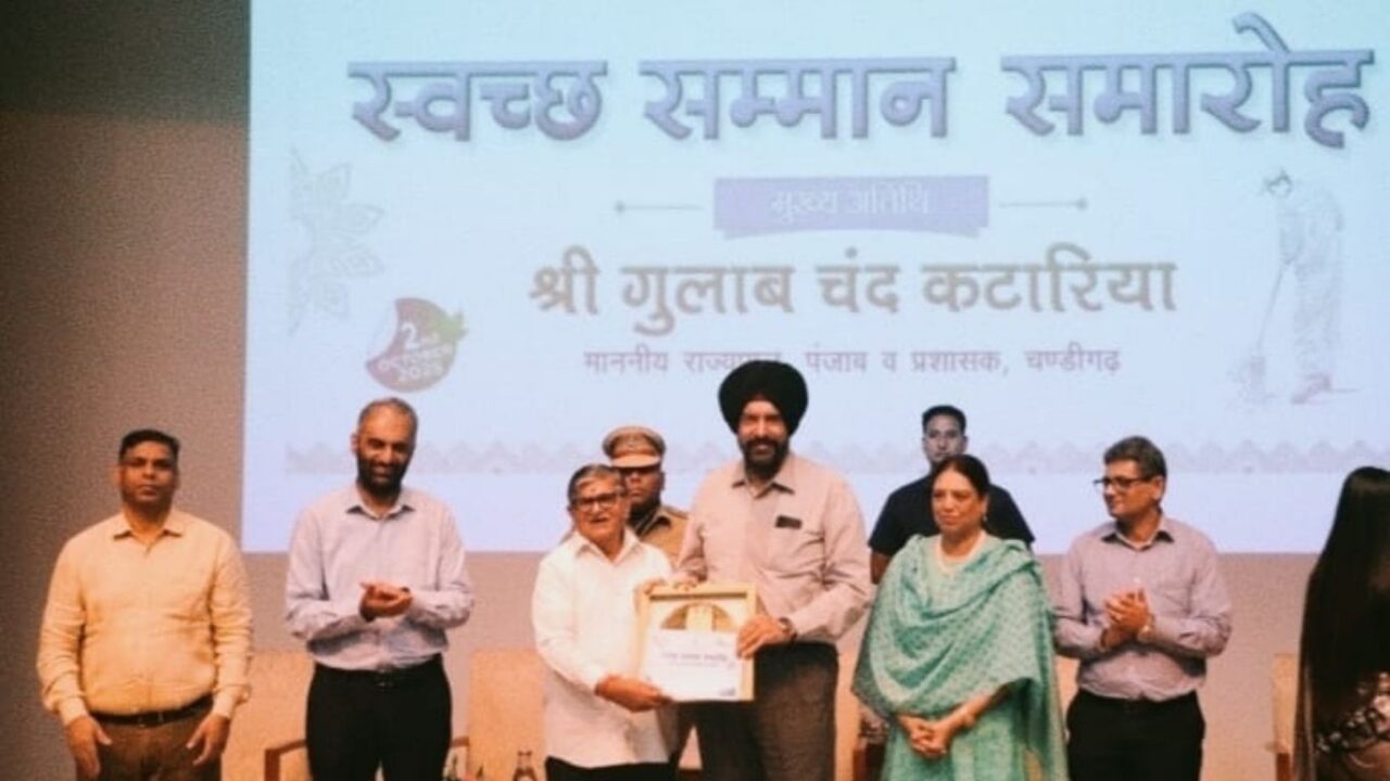 Chandigarh news: (आज समाज): चंडीगढ़ ट्रेडर्स एसोसिएशन, सेक्टर 17 के अध्यक्ष एवं स्वच्छ भारत मिशन के ब्रांड एंबेसडर श्री कमलजीत सिंह पंछी को आज पंजाब के माननीय राज्यपाल एवं चंडीगढ़ के प्रशासक श्री गुलाब चंद कटारिया द्वारा सम्मानित किया गया। यह सम्मान उन्हें स्वच्छ सम्मान समारोह के अवसर पर प्रदान किया गया, जो रानी लक्ष्मीबाई भवन, सेक्टर 38, चंडीगढ़ में आयोजित हुआ।