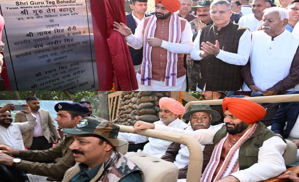 CM Nayab Saini, (आज समाज), यमुनानगर : हरियाणा के मुख्यमंत्री नायब सैनी ने यमुनानगर के कालेसर स्थित कलेसर राष्ट्रीय पार्क में श्री बंदा सिंह बहादुर वन्य जीव एवं जैव विधिवता का उद्घाटन किया, वहीं मुख्यमंत्री ने कलेसर नेशनल पार्क के मुख्य द्वार का भी उद्घाटन किया और जंगल सफारी का भी आनंद लिया। मुख्यमंत्री ने राष्ट्रीय उद्यान में AI आधारित मॉनिटरिंग और राष्ट्र स्तरीय वॉच टावरों का भी शिलान्यास किया गया।