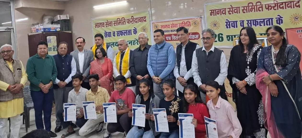 Faridabad News, आज समाज , फरीदाबाद। रविवार को मानव सेवा समिति कार्यालय मानव भवन सेक्टर-10 में एक कार्यक्रम आयोजित किया गया जिसमें मानव कंप्यूटर ट्रेनिंग सेंटर के पांचवे बैच के 11 छात्रों को उनकी सफल ट्रेनिंग के बाद प्रमाण पत्र प्रदान किए गए। इसके अलावा छटे बैच के नये विद्यार्थियों की कंप्यूटर ट्रेनिंग शुरू की गई।