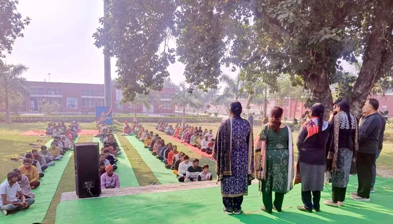 Jind News , आज समाज, जींद। गीता जयंती के उपलक्ष में गीता मनीषी स्वामी ज्ञानानंद महाराज की प्रेरणा से श्री कृष्णा कृपा सेवा समिति जिओ गीता परिवार के तत्वावधान में विभिन्न कार्यक्रमों का आयोजन किया गया। जिसमें मुख्य कार्यक्रम स्वामी ज्ञानानंद महाराज का वैश्विक आह्वान एक साथ-एक मिनट गीता पाठ कार्यक्रम था। जिसके तहत जींद के बहुत से स्कूलों में संपर्क कर विद्यालय में विद्यार्थियों ने एक साथ तीनों श्लोक का उच्चारण किया। यह श्लोक गीता जी के आरंभ मध्य तथा अंतिम श्लोक थे।