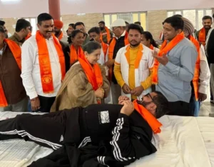 - सनातन टास्क फोर्स के रक्तदान शिविर में पहुंचीं थीं शक्ति रानी शर्मा