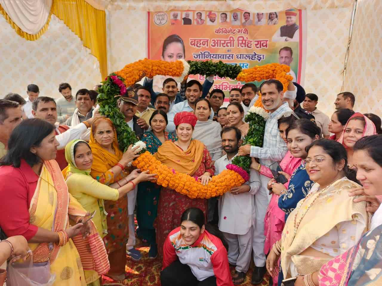 Health Minister Aarti Rao, (आज समाज), रेवाड़ी : स्वास्थ्य मंत्री आरती सिंह राव ने रेवाड़ी के धारूहेड़ा स्थित पी.एच.सी.का औचक निरीक्षण किया और कहा कि यहां डॉक्टरों सफाई कर्मियों की कमी को जल्द पूरा किया जाएगा। इसके बाद मंत्री गांव जोनिया वास में पार्टी कार्यकर्ताओं से मिलने और ग्रामीणों की समस्याएं सुनने पहुंची।