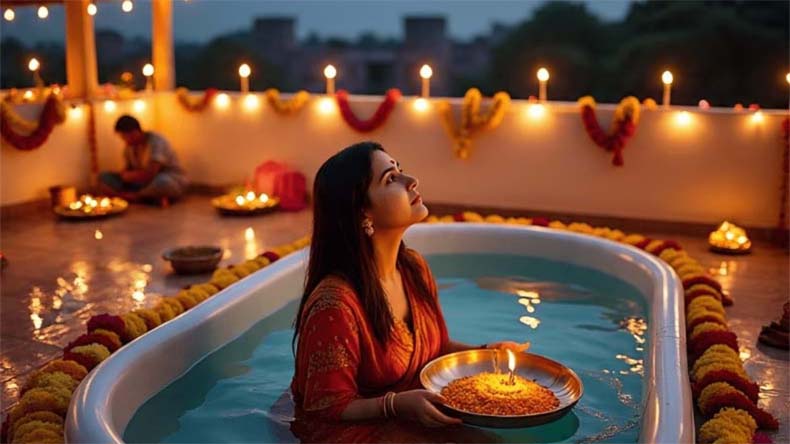 सनातन धर्म में ये विधान है कि आप जिस भी जगह सच्चे मन से देवी देवताओं का आह्वान करते है वो वहां अदृश्य रूप में मौजूद रहते हैं। ऐसे में यदि छत पर कृत्रिम कुंड बनाकर उसमें जल भरकर गंगा जल या किसी भी पवित्र नदी के जल की कुछ बूंदे उसमें डालते है तो वो कुंड भी उस पवित्र नदी के समान ही हो जाता है। उसके बाद वहां वायु देवता का आह्वान भी करना चाहिए। ऐसा करने से छत पर भी पूजा करने और अर्ध्य देने वालों को इस महाव्रत का पूरा फल मिलता है।