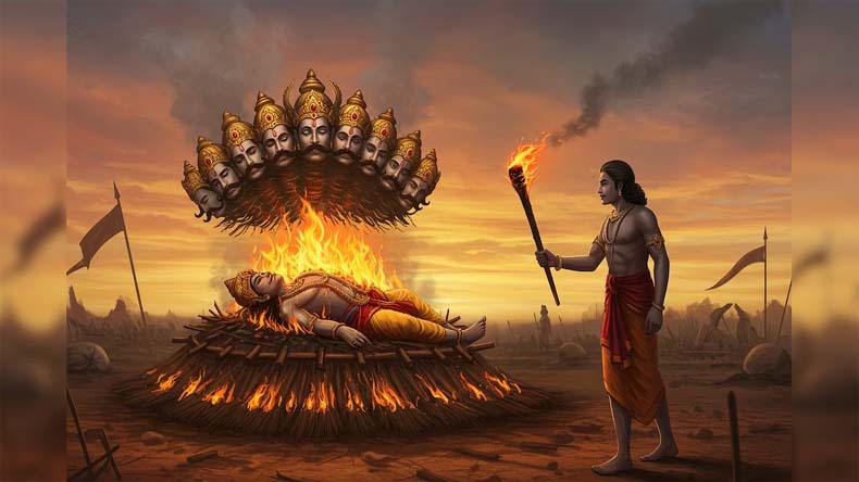 भगवान राम ने विभीषण को समझाया कि रावण एक प्रकांड पंडित था। साथ ही यह भी कहा कि मृत्यु के साथ ही पाप भी नष्ट हो जाते हैं। ऐसे में रावण का अंतिम संस्कार करने में कोई बुराई नहीं है। भगवान राम विभीषण से कहते हैं कि अब तुम्हें अपने भाई को क्षमा कर देना चाहिए और सम्मान पूर्वक रावण का दाह संस्कार करना चाहिए। तब राम जी के कहने पर विभीषण ने ऐसा ही किया।