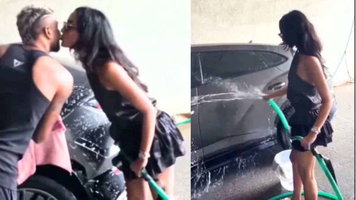 इंटरनेट पर छा रहे एक वीडियो में, हार्दिक पांड्या अपनी कार साफ़ करते हुए दिखाई दे रहे हैं, तभी माहिका उनके साथ आ जाती हैं। ट्विस्ट? वह अचानक झुककर उन्हें किस करती हैं, जिससे हार्दिक हैरान तो होते हैं,