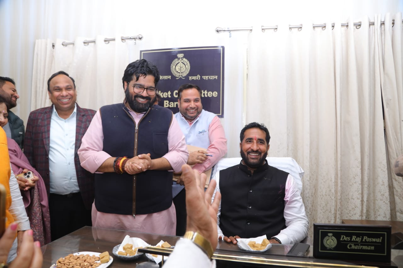 MP Kartikeya Sharma, (आज समाज), पंचकूला : रविवार को सांसद कार्तिकेय शर्मा मार्केट कमेटी बरवाला के नवनिर्वाचित चेयरमैन देसराज पोसवाल के शपथ ग्रहण एवं सम्मान समारोह में विशिष्ट अतिथि के रूप में सम्मिलित हुए। कार्यक्रम स्थल पर पहुँचने पर उनका भव्य स्वागत किया गया। इस अवसर पर सांसद कार्तिकेय शर्मा ने नवनिर्वाचित चेयरमैन देसराज पोसवाल को शुभकामनाएं देते हुए कहा कि मार्केट कमेटी जैसी संस्थाएं केवल प्रशासनिक इकाई नहीं होतीं, बल्कि यह किसानों और व्यापारियों के विश्वास का केंद्र होती हैं।