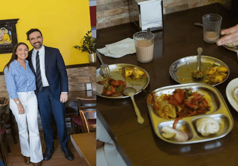 तस्वीर में, ओकासियो-कोर्टेज (Ocasio-Cortez) को मोमोज, आलू-दम और बाओ के साथ पनीर टिक्का, व चाय का आनंद लेते देखा जा सकता है। यह भोजन उनकी दक्षिण एशियाई विरासत को समर्पित है। लालीगुरस बिस्ट्रो (Laliguras Bistro), जैक्सन हाइट्स, क्वींस, न्यूयॉर्क में स्थित एक भारतीय और नेपाली भोजनालय है। ओकासियो-कोर्टेज उन चंद डेमोक्रेट्स में से एक थीं जिन्होंने मेयर पद के लिए ममदानी का समर्थन किया था।