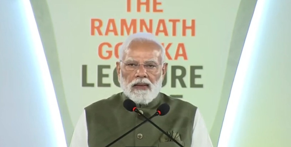 प्रधानमंत्री नरेंद्र मोदी नई दिल्ली में छठे रामनाथ गोयनका व्याख्यान कार्यक्रम को सम्बोधित कर रहे थे। प्रधानमंत्री नरेंद्र मोदी ने कहा कि लोगों ने देखा है कि 21वीं सदी के पिछले 25 साल कितनी तेजी से बीते हैं और एक के बाद एक कई चुनौतियां सामने आईं हैं, बावजूद इसके भारत के विकास को रोका नहीं जा सका है। इस व्याख्यान कार्यक्रम में प्रधानमंत्री ने कई मुद्दों पर खुलकर बात की।