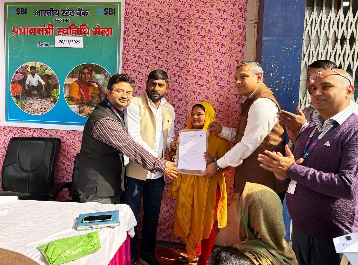 Faridabad News, आज समाज, फरीदाबाद। बल्लभगढ़ राष्ट्रीय राजमार्ग चावला कालोनी स्थित भारतीय स्टेट बैंक (एसबीआई) बैंक परिसर में प्रधानमंत्री स्वनिधी योजना के तहत रेहड़ी-पटरी वालों को लोन वितरित किए गए। इस अवसर मुख्य अतिथि के रूप में पार्षद जसवंत पंवार सैनी उपस्थित रहे।