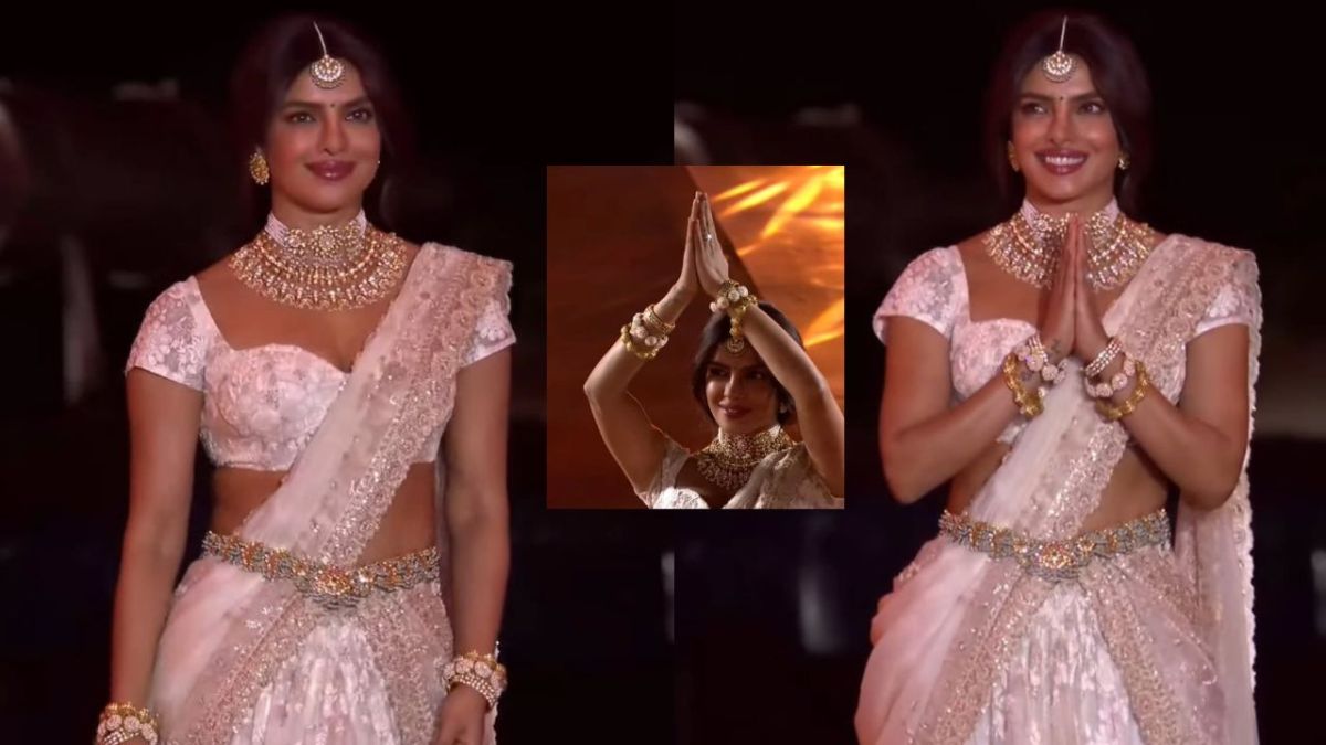 प्रियंका का पूरा लुक वैभव और शान से भरपूर था। सफ़ेद लहंगा-साड़ी के साथ, उन्होंने एक भारी हार, मैचिंग माँग-टीका, चूड़ियाँ और एक खूबसूरत कमरबंद पहना था। उनका शाही अवतार किसी परीकथा की राजकुमारी से कम नहीं था। जैसे ही वह कार्यक्रम स्थल पर पहुँचीं, उनकी शालीनता और मनमोहक मुस्कान ने सभी को तुरंत मोहित कर लिया।