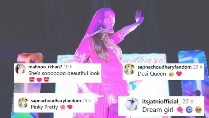 तस्वीरों में, सपना एक खूबसूरत गुलाबी सूट पहने और सिर पर घूंघट डाले स्टेज पर दिल खोलकर डांस करती नज़र आ रही हैं। उनकी खूबसूरती, ऊर्जा और भाव-भंगिमाओं ने प्रशंसकों को मंत्रमुग्ध कर दिया और उनके कमेंट सेक्शन पर दिल और आग वाले इमोजी की बाढ़ आ गई।