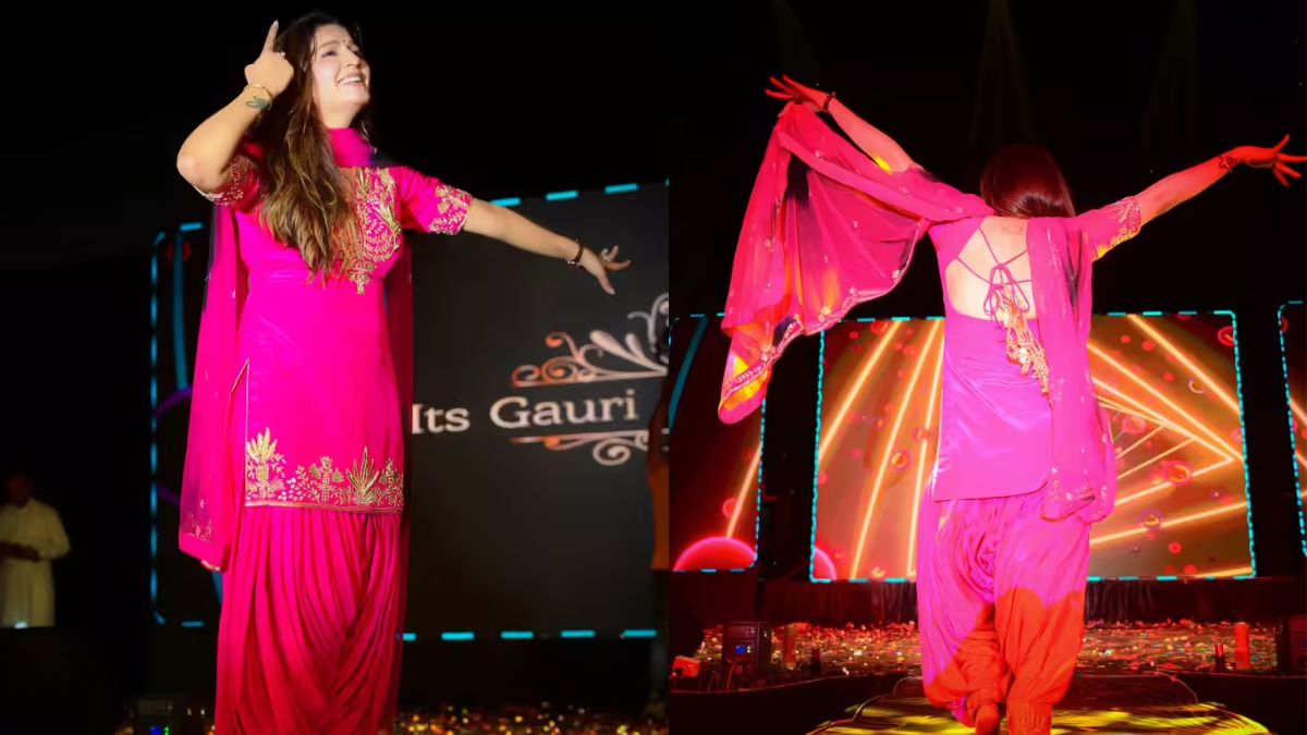 Sapna Choudhary हरियाणवी सनसनी सपना चौधरी जब भी किसी कार्यक्रम में नज़र आती हैं – चाहे वह किसी कार्यक्रम में हों या सोशल मीडिया पर अपनी खूबसूरत तस्वीरों के ज़रिए – वह अपने प्रशंसकों का दिल जीतने में कभी असफल नहीं होतीं। इस बार, देसी दिवा ने अपनी नवीनतम स्टेज परफॉर्मेंस तस्वीरों से इंटरनेट पर तहलका मचा दिया है, जहाँ वह पारंपरिक घूंघट के साथ गुलाबी सूट में बेहद खूबसूरत लग रही हैं। सपना चौधरी का गुलाबी सूट लुक ऑनलाइन चर्चा का विषय बना हुआ है