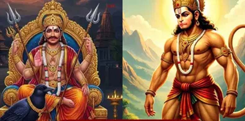 पौराणिक कथा के अनुसार, शनि देव को अपनी शक्तियों पर घमंड था, क्योंकि वह अपनी वक्र दृष्टि से किसी का भी अहित कर सकते थे। एक बार जब हनुमान जी जंगल में बैठकर राम जी की भक्ति कर रहे थे, उसी समय वहां से शनि देव गुजर रहे थे। उनकी दृष्टि हनुमान जी पर पड़ी और उन्होंने बजरंगबली पर वक्र दृष्टि डालने का सोचा। लेकिन इसका हनुमान जी पर कोई प्रभाव नहीं पड़ा। इसपर शनि देव क्रोधित हो उठे और उन्होंने इससे हनुमान जी को ललकारा, लेकिन इसका भी हनुमान जी पर कोई असर नहीं हुआ और वह पहले की तरह अपनी तपस्या में लीन रहे। बात को अनसुनी करने पर शनि देव का क्रोध और भी बढ़ गया।